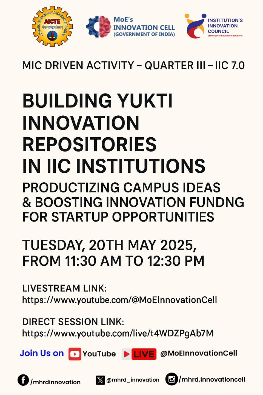 Flyer : Building Yukti Innovation Repositories in IIC Institutions , Date: 20-05-2025 |